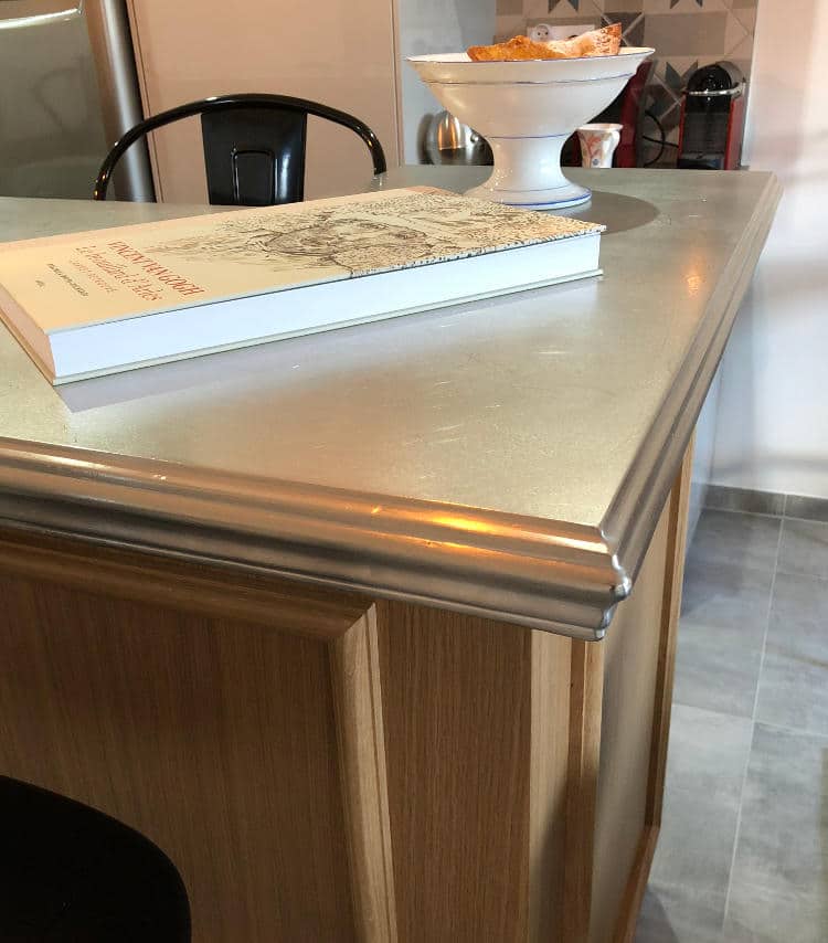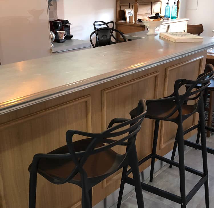 14 Mar 2018 Comptoir étain pour particulier par admin | Classé dans : Actualité | 0 Véritable comptoir pour particulier Réalisation d’un véritable comptoir classique pour un particulier avec façade en boiserie teintée vernie, moulures, plinthes inox et surtout… un dessus en étain avec frise à l’ancienne martelée à la main.