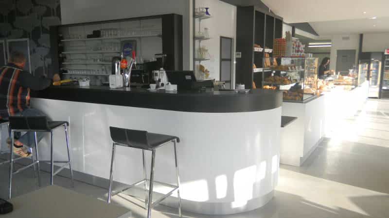 Pour l’agencement de cette boulangerie snack située à Montauban, nous avons conçu des meubles spécifiques à chaque espace avec une partie réservée à la boulangerie pâtisserie et une autre partie dédiée au snack bar. Le jeu des contrastes noir-blanc donne une ambiance moderne et met en valeur la richesse des produits proposés: pains, pains bio, viennoiseries, pâtisseries, spécialités locales… Le coin snack permet d’accueillir les clients confortablement autour d’un comptoir convivial pour une café.