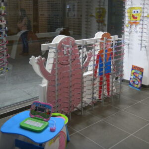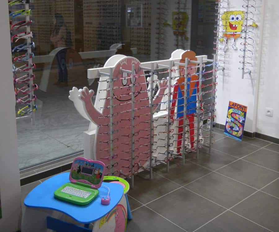 - Espace enfants avec présentoir ludique en forme de “playmobil”.