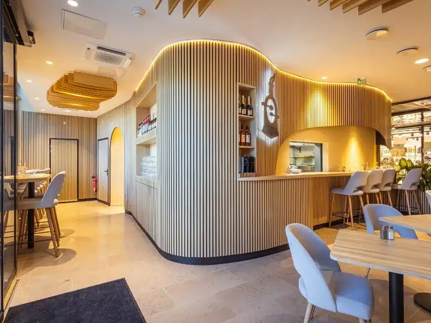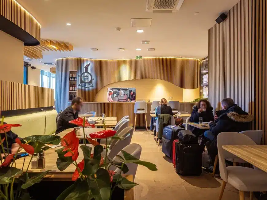 Agencement bois original pour cette Brasserie de gare