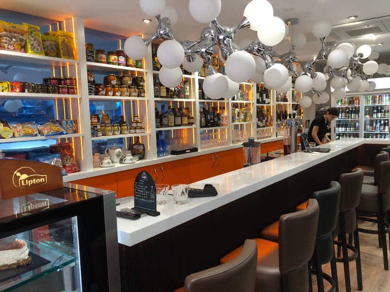 - La décoration bois (façade comptoir et soubassement) pour évoquer les forêts de Sybérie