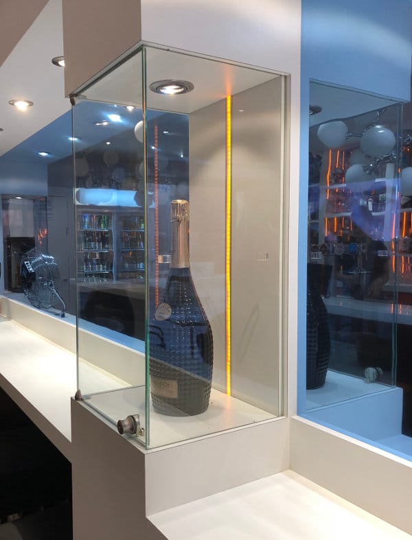 - Vitrine de présentation type bijouterie avec éclairage spot et LED pour mettre en valeur les produits