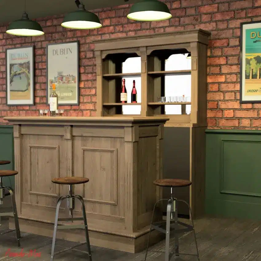 Avec le Home Bar DUPLIN recréez l’atmosphère typique des pub irlandais chez Vous. Surprenez vos amis avec ce comptoir de bois rouge à façade cintrée et moulurée. Le rayonnage de style très classique avec un fond miroir vous donnera toute la profondeur nécessaire pour mettre en valeur vos meilleurs crus!