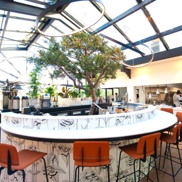 Le nouvel établissement Des Roses et Des Orties vient remplacer l’ancien Amphitryon suite à une rénovation totale du concept. C’est l’agence Cécilia Febrer qui a relevé le defi de transformer les locaux des cette institution. Pari manifestement réussi avec une décoration très originale associant végétal et minéral sous forme de matériaux bruts (béton, fer, pierre…) et authentiques à l’image de la cuisine.