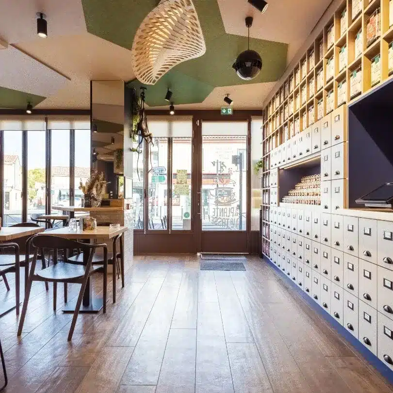 L’ensemble compose un coffé shop chaleureux et authentique, invitant à la pause et à la découverte.