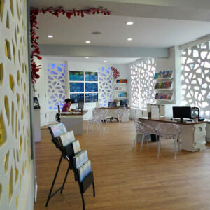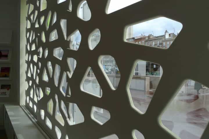 L’agence de voyages Verdié à Toulouse est située sur les allées Jean-Jaurès qui relient le centre ville à la gare Matabiau où les TGV attendent déjà le voyageur. Or c’est précisément une invitation à découvrir le monde que Vous propose l’agence Verdié grâce à un agencement original qui suscite la curiosité du voyageur et le plonge dans un paysage surprenant. L’espace ouvert et lumineux évoque les étendues lointaines alors que les parois ajourées donnent un effet de profondeur et modifie la perspective. Le contraste changeant des lumières joue sur la perception et les émotions du voyageur et comme l’évoquait André Gide “La perception commence au changement de sensations, d’où la nécessité des voyage.”