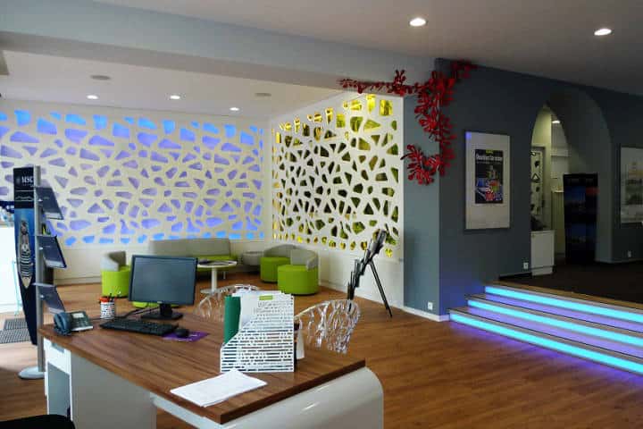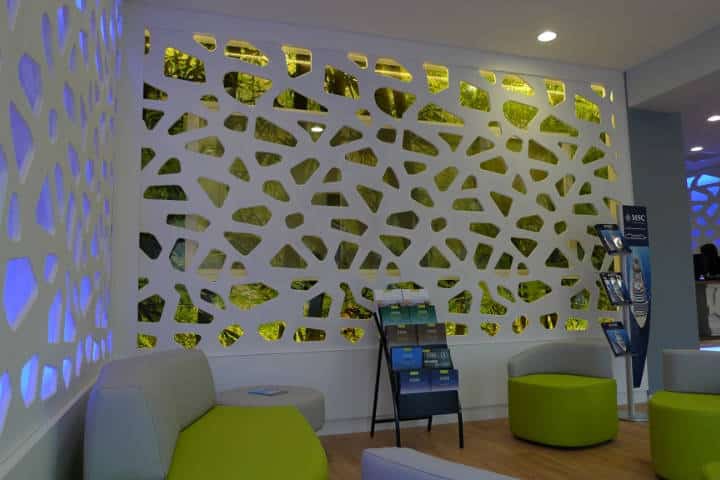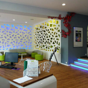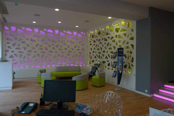 - parois ajourées, claustras, aux motifs originaux avec éclairage aux couleurs changeantes