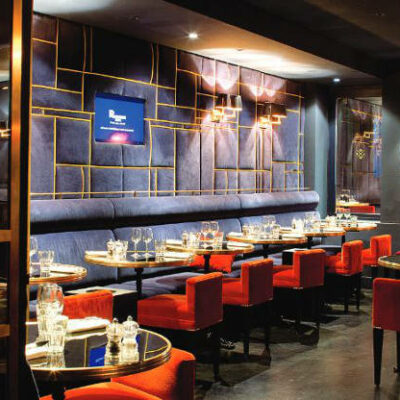 Pour la réalisation de son nouveau décor contemporain qui combine plusieurs ambiances (halo de lumières changeantes côté bar, lustres baroques côté table d’hôtes) JP Gleize a fait confiance à Aranda-Mas: