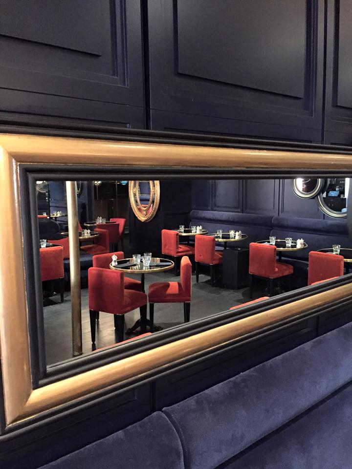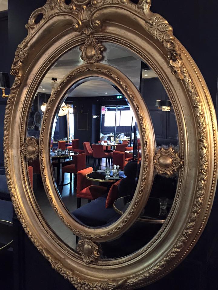 - habillages muraux intégrant moulures et miroirs décoratifs