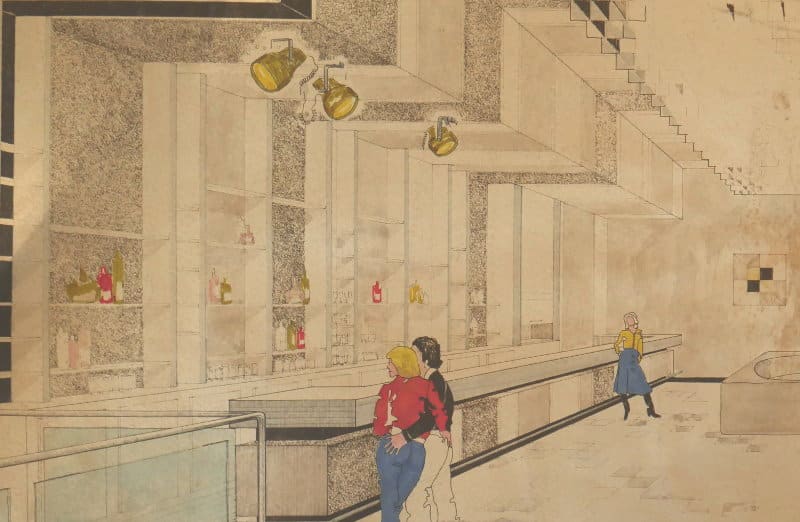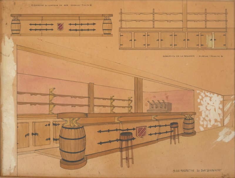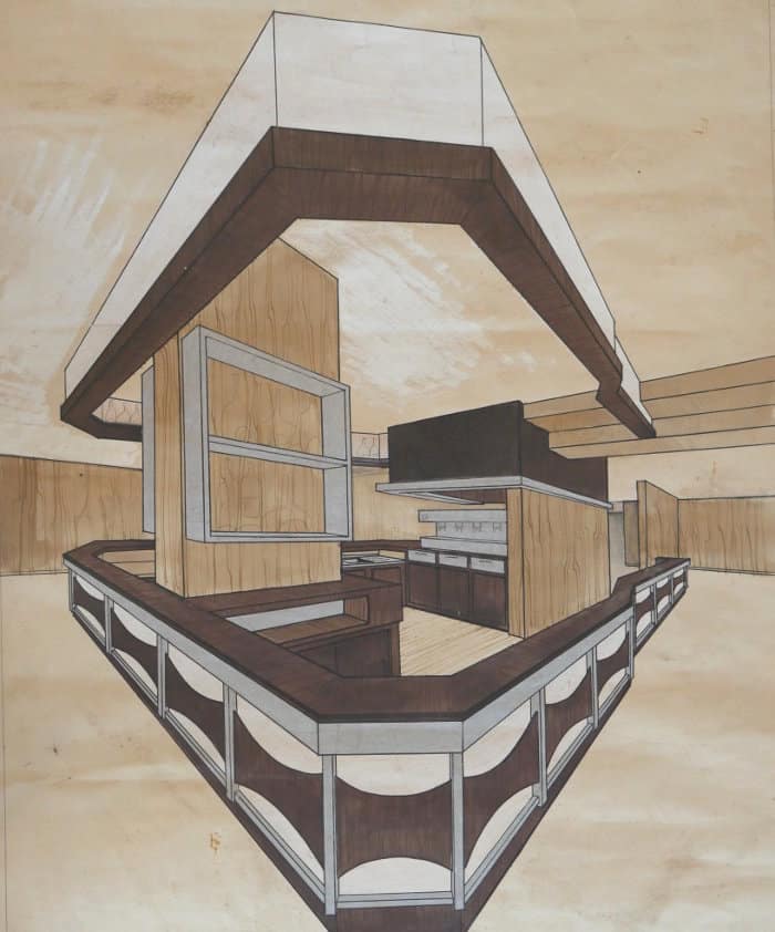 Les vues 3D, effectuées alors sans le moindre ordinateur, sont de petits chefs-d’œuvre dessinés au crayon, peints à l’aquarelle, superposant différents plans avec la technique des calques et jouant sur les effets de perspective très prononcée. Des échantillons de matériaux étaient même directement collés sur les différentes surfaces représentées pour plus de réalisme et de relief, restituant ainsi les bons effets au toucher… chose que de nos jours nous ne parvenons pas à reproduire, même avec l’aide des meilleurs logiciels de rendu 3D et de réalité virtuelle.