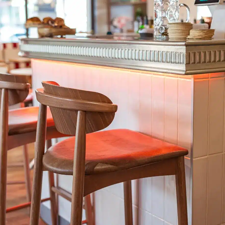 L’élément central du bistrot est son bar conçu pour offrir une expérience à la fois esthétique et fonctionnelle. Les éléments que nous avons réalisés sont: