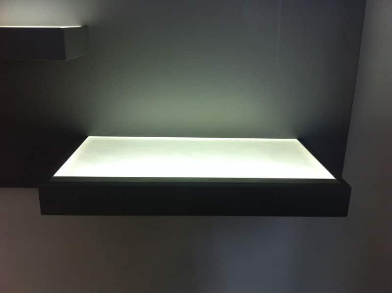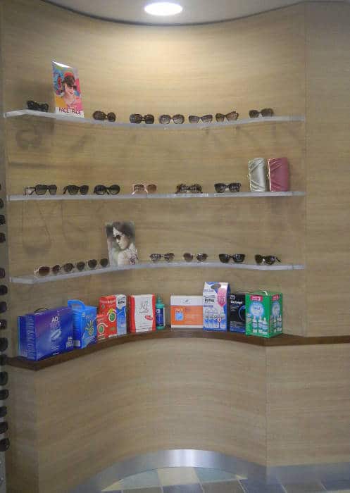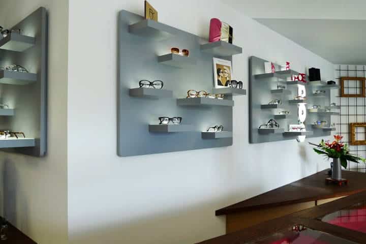 - présentoirs muraux avec éclairage intégré pour mettre en valeur les lunettes